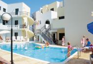 Kenmerken van dit appartementencomplex zijn ruime en licht ingerichte appartementen, in het bruisende centrum van Stalis, halfpension, aan het strand.