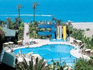 Holiday Park Alanya Hotel Hotel Holiday Park heeft een schitterende groene ligging aan het strand tussen Alanya en Side in Turkije en bied een mooi zwembad met leuke glijbanen.